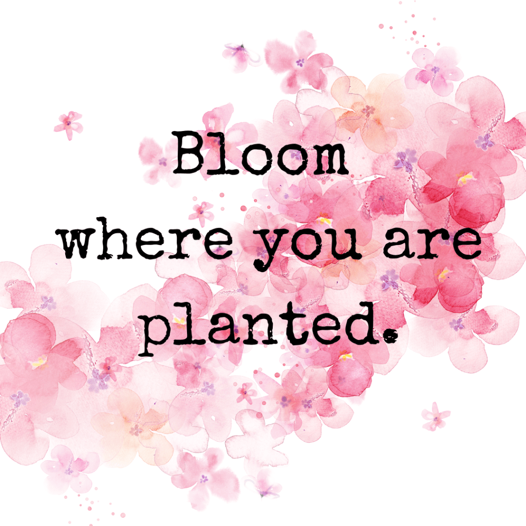 But from the spot where we are planted we can flower just as brightly. When we accept where we are and commit to growth in the place where life has sown us, we are able to blossom. And then, like seeds, we may be blown to new green pastures, or actually prefer to stay.